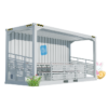 Gradin conteneur couvert en acier Corten, résistant aux intempéries et à l’usure, offrant un confort optimal quelles que soient les conditions climatiques.