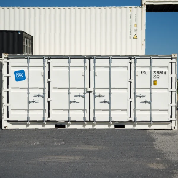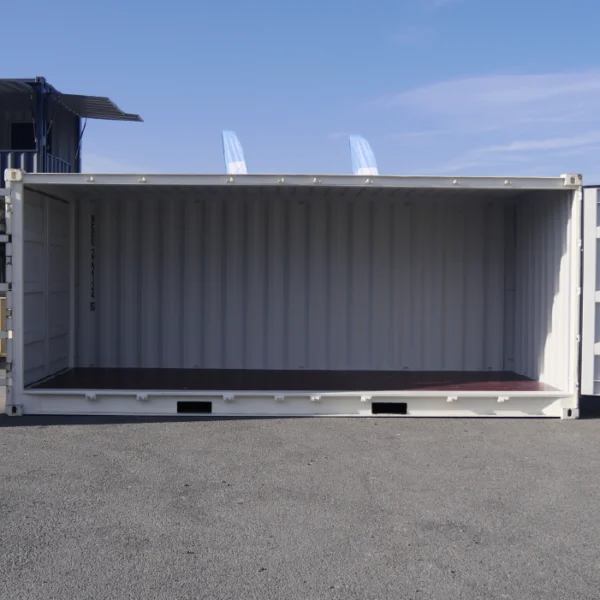 Le conteneur maritime 20 pieds Open Side 1er voyage est très prisé dans l’industrie automobile et l’événementiel. Son ouverture latérale facilite le chargement et le déchargement de la marchandise. Il est aussi utilisé pour exposer des produits ou créer des scénographies impactantes.