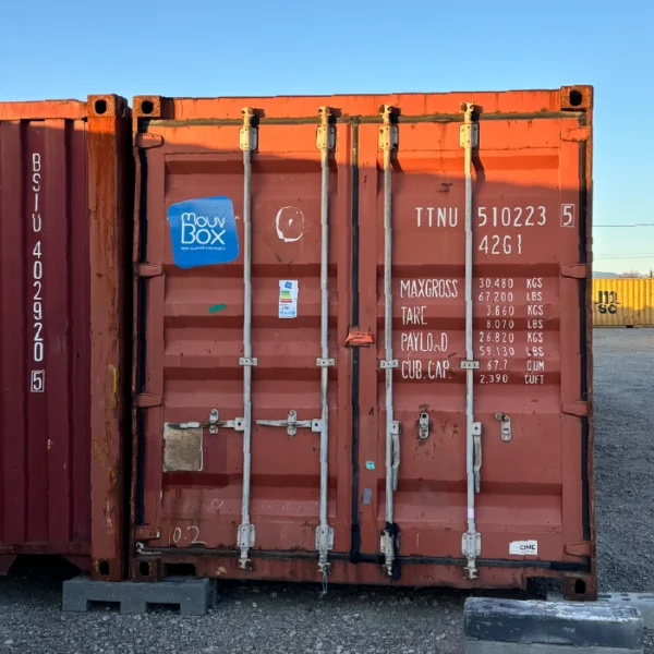Container 40 pieds occasion DRY étanche (Classe A / dernier voyage)À partir de 1 599€ HTou 42€ HT/mois en LOA sur 48 mois : en savoir plus Voir le produit