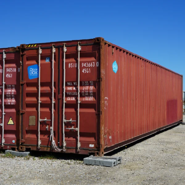 Le container maritime 40 pieds High Cube d’occasion offre 15% de volume avec ses 30cm de hauteur supplémentaires. Il est équipé de coins ISO pour une manutention aisée, et il est idéal pour stocker des biens volumineux.