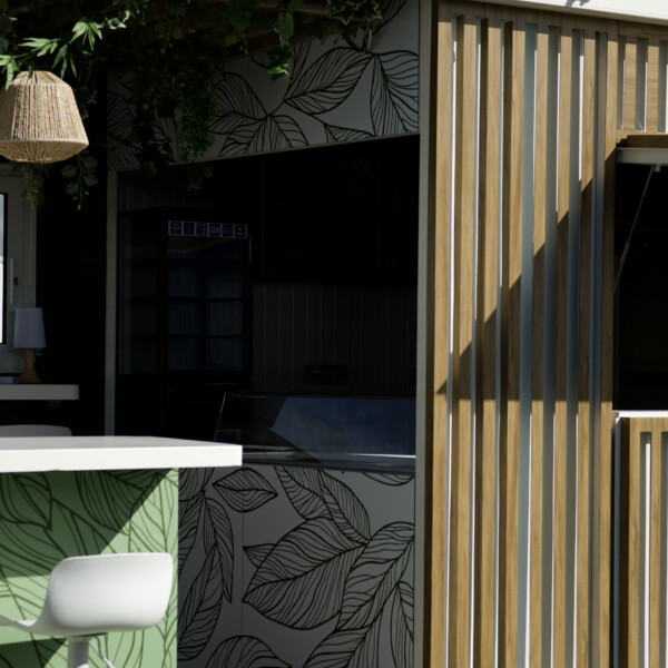 Des options déco permettent de personnaliser votre module : enseignes rabattables, covering, toit végétal, toile tendue lumineuse, plaques de menu en aluminium, etc.