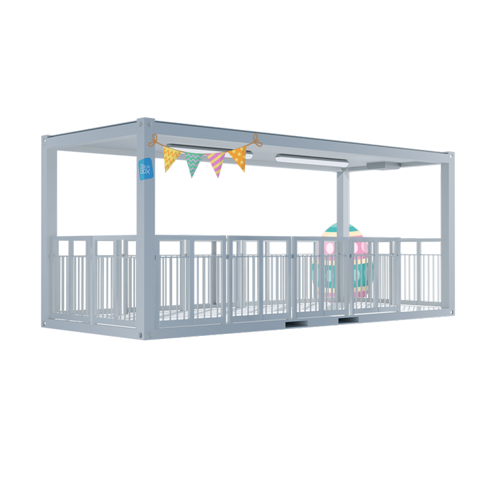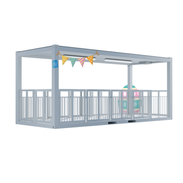 La terrasse modulaire 20 pieds couverte est conçue sur la base d’un bâtiment modulaire 20 pieds standard. Elle offre un espace extérieur protégé avec un toit, qui s’adapte à des ensembles de bungalows ou qui peut être utilisé seul. Notre module dispose d’un équipement électrique aux normes, et de garde-corps.